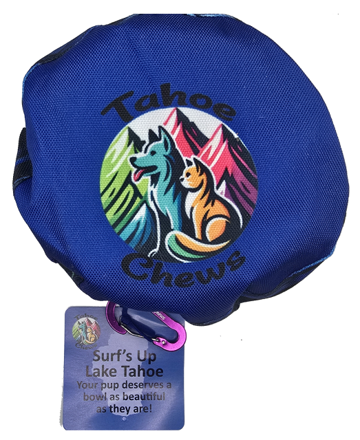 Why settle for a plain bowl? The "Glass Mountains" Collapsible Bowl brings vibrant style to on-the-go hydration. Inspired by the dreamlike colors of an alpine glow, this ultra-light, clip-on bowl is built for the pet owner who values both art and adventure. It’s the perfect, practical souvenir that lets customers take a piece of Tahoe's magic home with them.